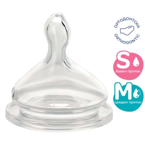 Анатомска/ортодонтска силиконска анти-колик цуцла за бебиња од 0-24 месеци.